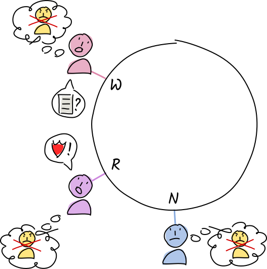 We’ll carry on with the DHT illustrations from chapter 4 to show what happens when data is written, but let’s add a simple validation rule: there’s a word entry type that must be a string, but the string can’t contain spaces.